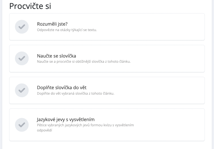 Pro ještě lepší upevnění doporučujeme po dokončení aktivit si celý článek přečíst a poslechnout znovu, případně se k němu po čase vrátit.